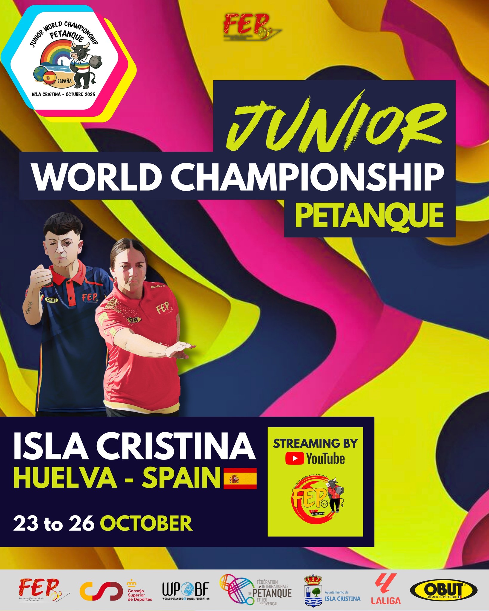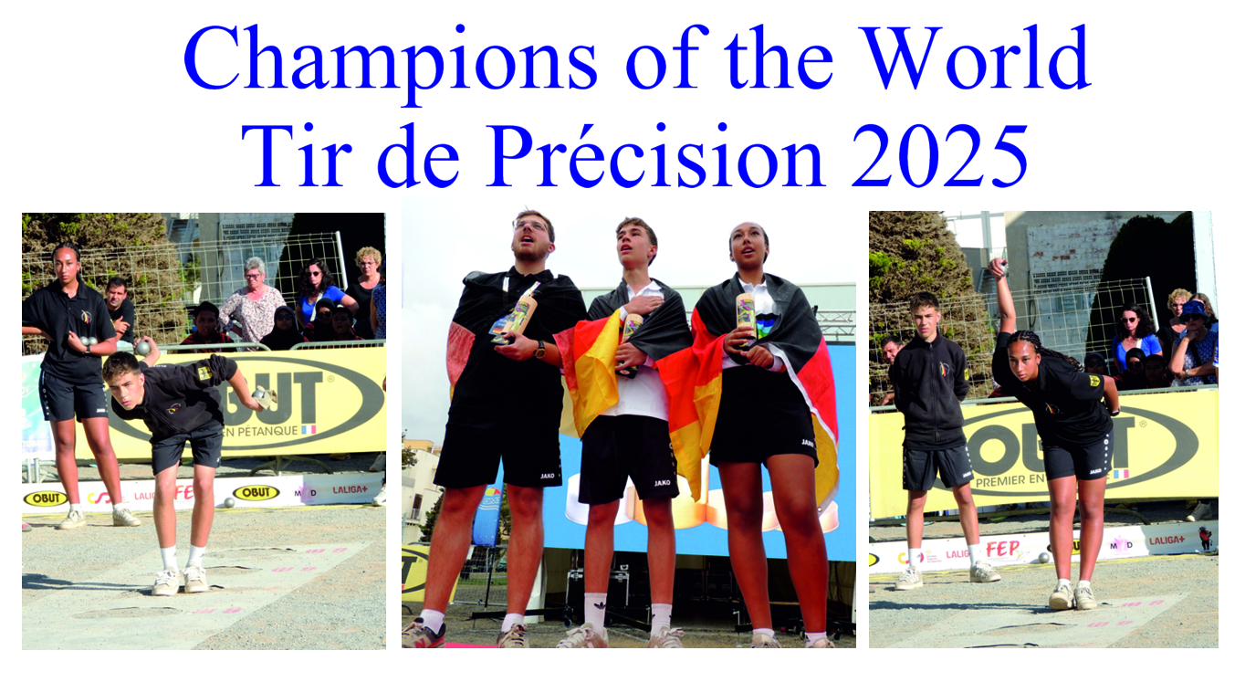 Triplette Jugend, Dou.-Mixte-Jugend und Tir de Précision Jugend. Veranstalter für die Weltmeisterschaften ist der Weltverband FIPJP (dazu die bisherigen Verbandslogos).